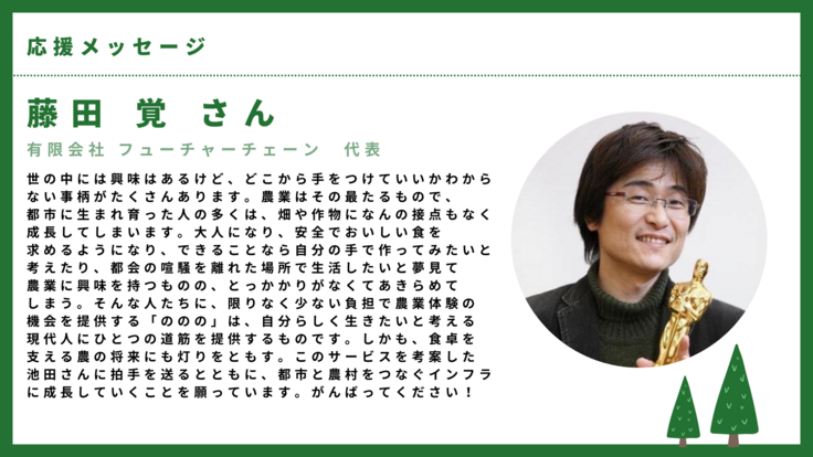 応援メッセージ ~有限会社フューチャーチェーン代表 藤田覚さん~