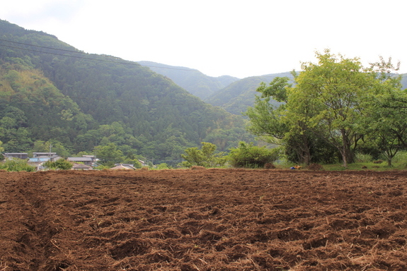そこで知り合いに相談したところ、農薬無使用の畑をお借りすることができました。場所は沼津から車で1時間の伊豆市湯ケ島。最初は10坪程度の大豆畑の予定でしたが、私の夢は天城連山の連なりと一緒に膨らんでいきます。子どもたちと一緒にこの美しいロケーションで枝豆を食べたり、畑あそびをしたり、火起こし体験をさせてあげたいと思いました。そんな夢を語っていたらいつの間にか畑一面お借りすることになっていました。