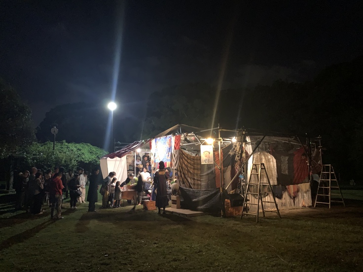 目標として"テント芝居"を打ち出しつつ、なかなかテントでやらずに野外でばかり上演していた私たちでしたが、なんとかこれで、テント芝居をやる劇団だという説明はできそうです!