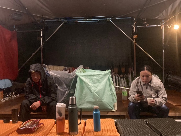 豪雨をビバークする陣営