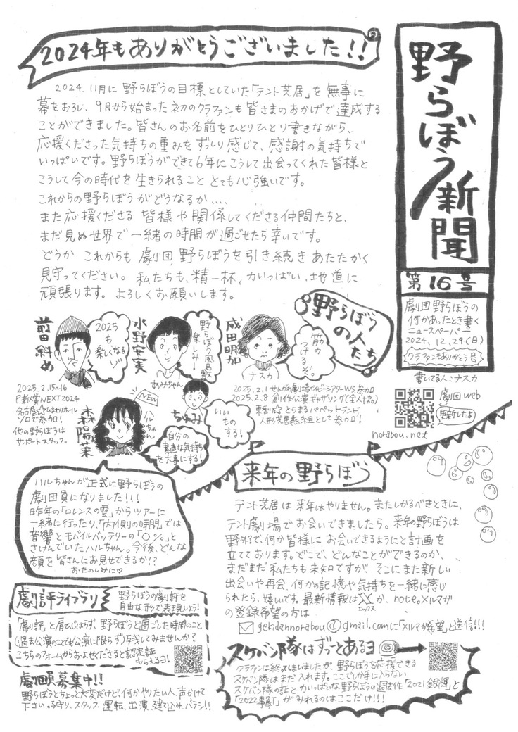 野らぼう新聞クラファン特別号・第16号発行!!