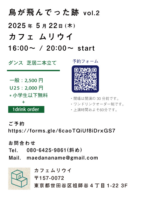 クラファンクロストークでもお世話になったダンサーの横山彰乃さんと前田斜めのふたりで鳥が飛んでった跡!vol.2!