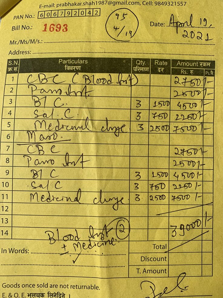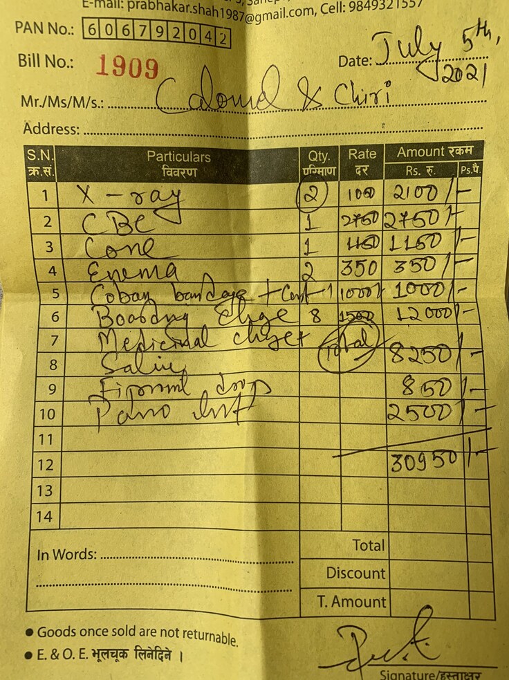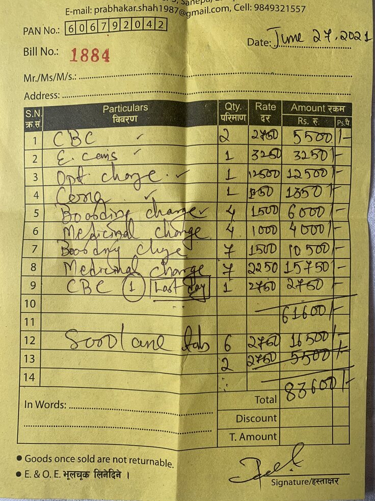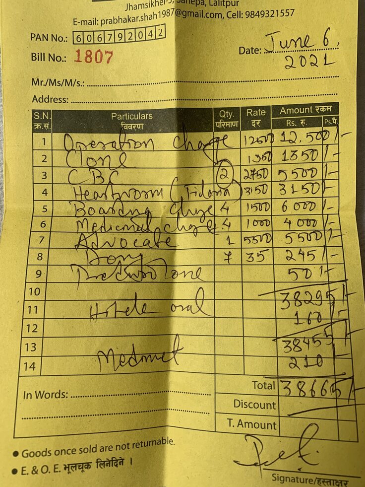 これまでの治療費の一例(1匹あたり平均4万円(1ルピー1円)拡大してご覧ください)