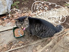 新たな猫が餌場に来ました。小さくて満足にご飯を食べられてないみたいで