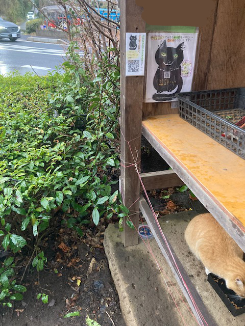 無人野菜販売店の下が、一部の猫たちの餌場です。