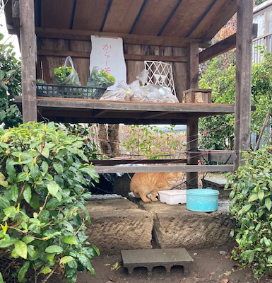 野良猫たちは、器用にするりと乗り越えますが、時々、人間は釣り糸に引っかかっています(笑)