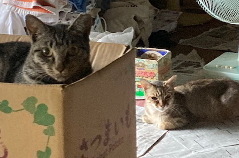 一昨日、宝泉寺さんに集まったリサイクルTシャツを、野良猫ハウスに敷いてみました。