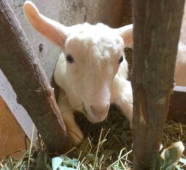 この春生まれた7頭の子やぎはすくすくと成長し、写真のように葉っぱも少しづつ食べ始めました!おそらく2頭がメスで5頭がオスです。そして、最後の2頭がお母さんヤギのおなかの中で動いてます。 もうすぐ出産かと思い、私たちもワクワクしています!
