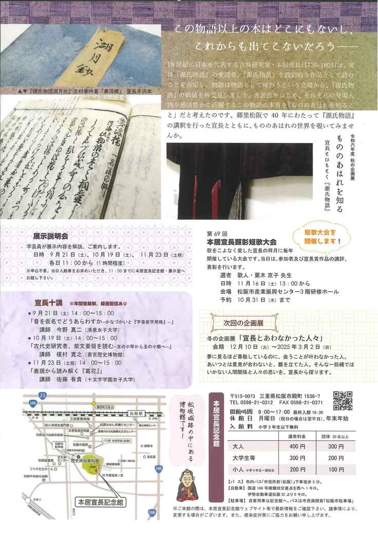 【回覧板】秋の企画展「もののあはれを知る ~宣長とひもとく『源氏物語』~」