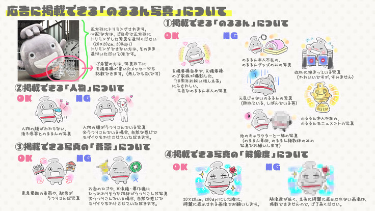 (のるるん本人が不在のグッズのみの写真や、モニュメントの写真はNG)