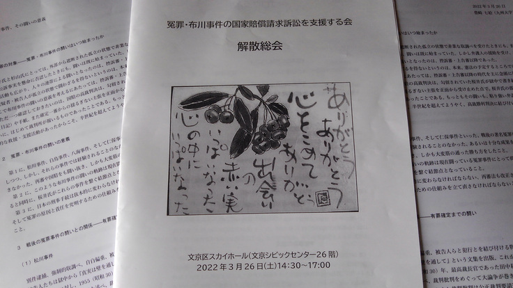 昨日は東京ドームを見下ろす文京シビックホール26Fの文京区スカイホールで「布川国賠を支援する会」の解散総会が開かれました。「解散」という言葉には何やら寂しい響きもありますが、桜井昌司さんの長きに渡った闘いが完全勝利を遂げて、目的を完全に遂行したため、目出度く大団円となっての解散です。おめでとうございます!!