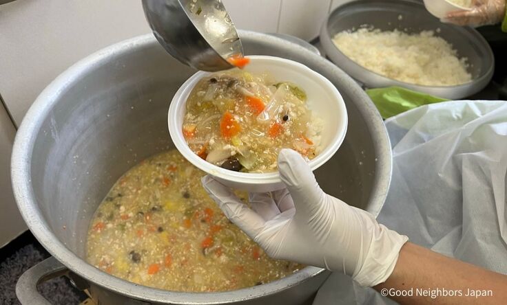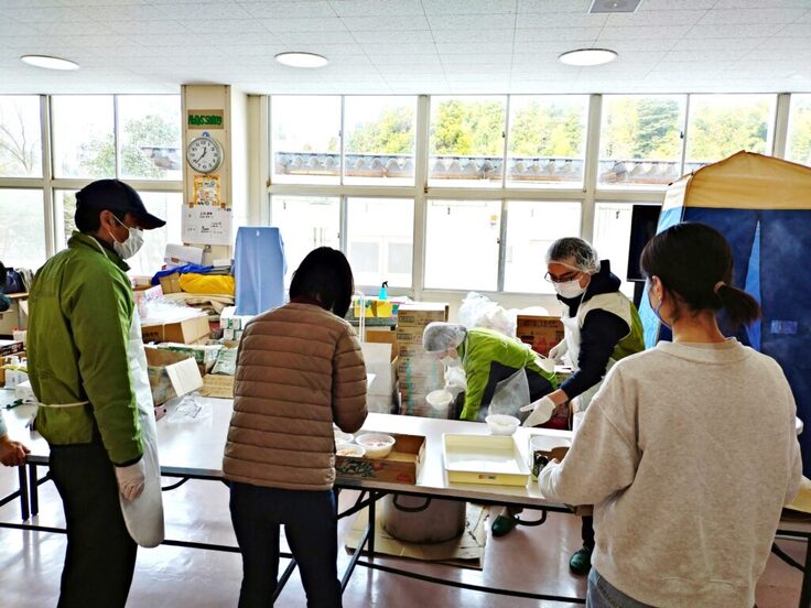 グッドネーバーズ・ジャパンは、建物の一部を避難所として提供している輪島市のJAのと おおぞら天翔河原田にて1月12日に約80人分、輪島市立河原田小学校にて14日に約100人分の中華丼の提供しました。