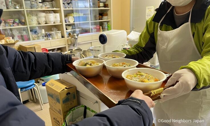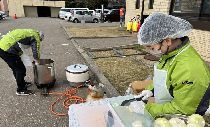 グッドネーバーズ・ジャパンは輪島市内の避難所にて、これまでに計9回の炊き出し支援を実施しています。直近では、2月3日に輪島市地方合同庁舎、2月5日には、港公民館と地域生活支援センターのウミュードソラにて、昼食を提供いたしました。