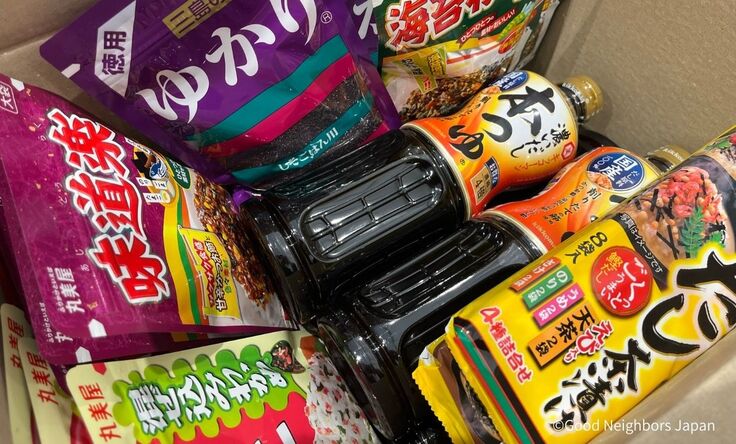 その後、詳しく必要なものの聞き取りを行い、めんつゆ、みりん、鶏がらスープ、ふりかけ、お茶漬けなどの調味料や食品を2月5日にお届けしました。「こんなに!助かります」「すべて欲しかったものです!」と喜びの声をいただきました。