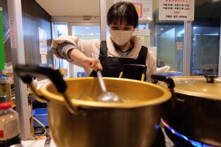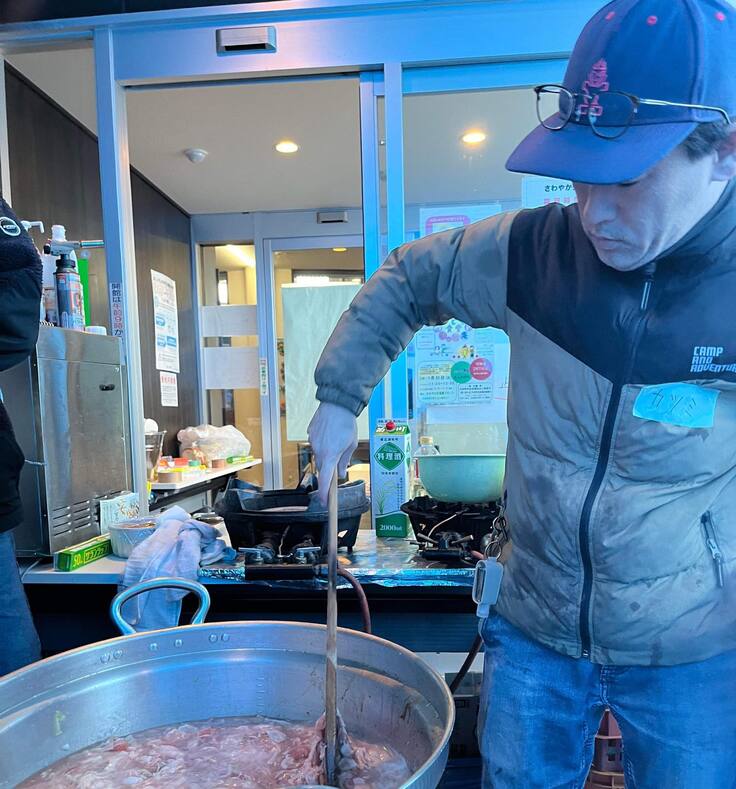 初めまして。今回の発起人の一人、濱下有紀です。生まれも育ちも穴水町です。今までは穴水町内で仕事をしていましたが、今回の震災で自宅と職場が損壊しました。現在はプルートで避難生活を送りながら、毎日炊き出し支援を行っています。初めは母と2人の避難生活でしたが、母の持病が悪化し、病院に移ったため自分一人に。避難所に一人でいると悪いことばかりが頭をよぎる一方で、少しでも気が紛れるなら、誰かのためになるなら...と炊き出しに関わることを決めました。今まで飲食経験はなかったものの、家でよく自炊をしていたもので調理は慣れていました。はじめは飯炊きや野菜のカットがメインでしたが、日が経つうちに様々な調理を担当するようになりました。