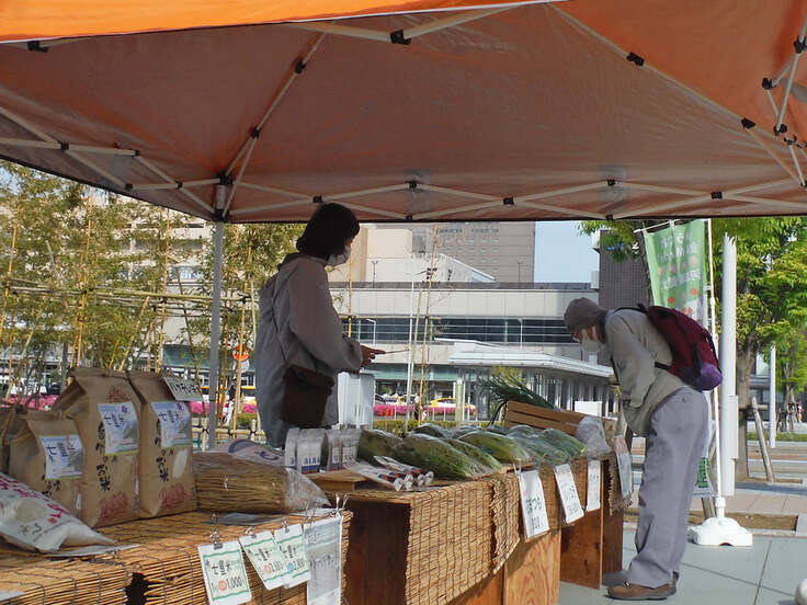 河北潟や能登でつくられたこだわり農産物などを作り手が直接販売し、食べる人も、作る人も、おいしい、新鮮、安心を追及して、色々な情報交換をしながら楽しく買い物するマルシェとなることを願って取り組んでいます。
