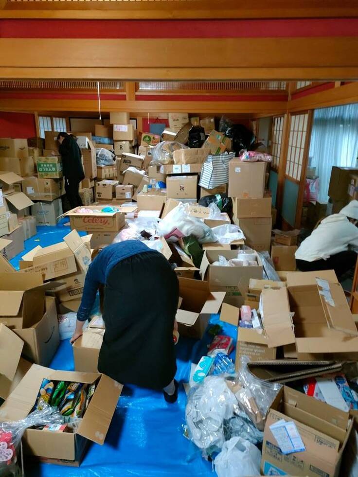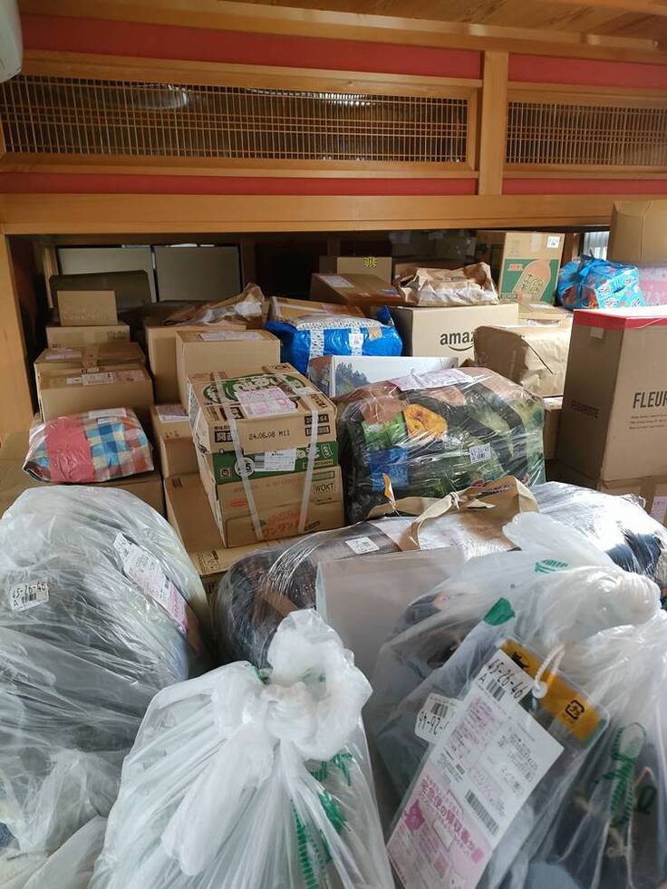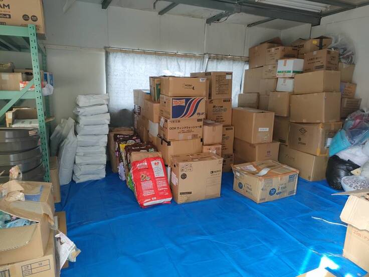 支援の呼びかけに多くの方からの物資が事務所に到着。