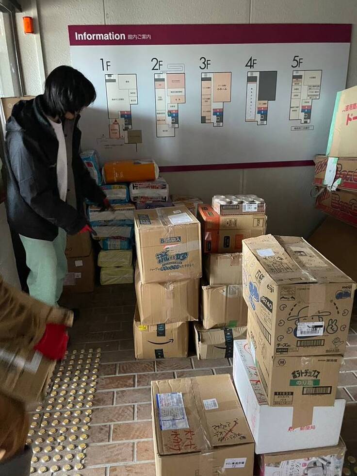 輪島市文化会館にて物資の搬入と在庫状況の確認。