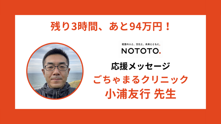 あと94万円、ごちゃまるクリニック 小浦友行 先生より応援メッセージ!