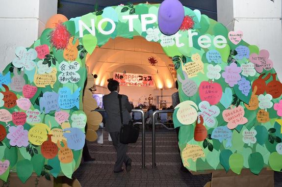 会場には、来場した方々のNO TPP!!コメントをツリーに自由に貼ってもらいました。たくさんのコメントがツリーを飾ることとなりました!皆の想いが一つになった素敵なツリーです。