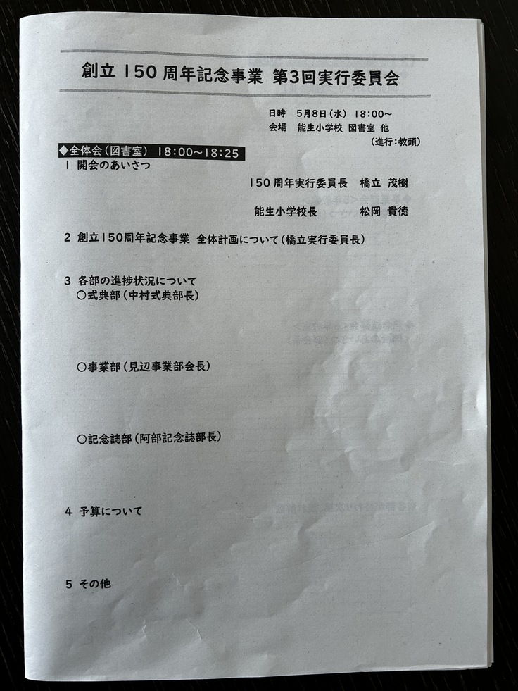 記念誌部からは、推進日程と全体構成が示され、資料集め等の協力の依頼が有りました。