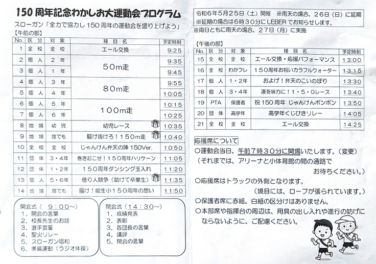 皆さんのお陰で、子供達の思い出に残る素晴らしい150周年記念わかしお大運動会になったのではないかと思います。