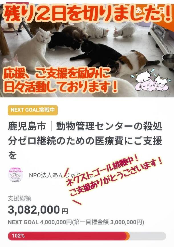 あんじゅりあんの殺処分ゼロを継続するためのネクストゴールニャンฅ(>ω< )ฅニャン♪
