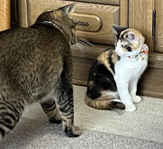 しかし意外なほど、当の三毛ちゃんは物怖じもせず、ココア君の方が緊張気味に対面を果たし、、待ってくれていたおばあちゃまにも喜んで頂いたと写真動画がすぐに送られて来ました。なまえはリリナちゃんに決まったそうです。