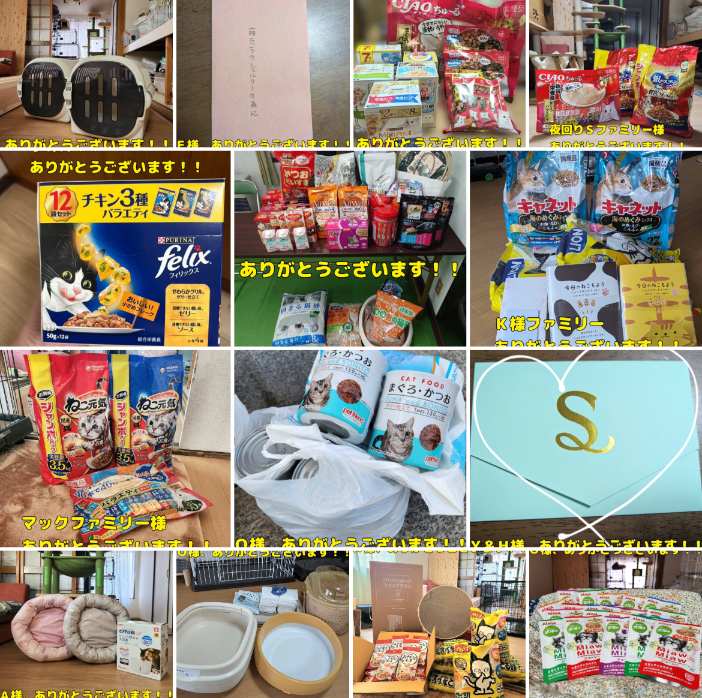 全ての支援物資の画像は載せられていないのですが、今月はシェルターの開設もあり、ケージやトイレ、ごはんなど多くのご支援をいただきました。本当にありがとうございます。サポーターの皆様のご支援金も含めて、すべて猫たちのために大切に使わせていただきます。