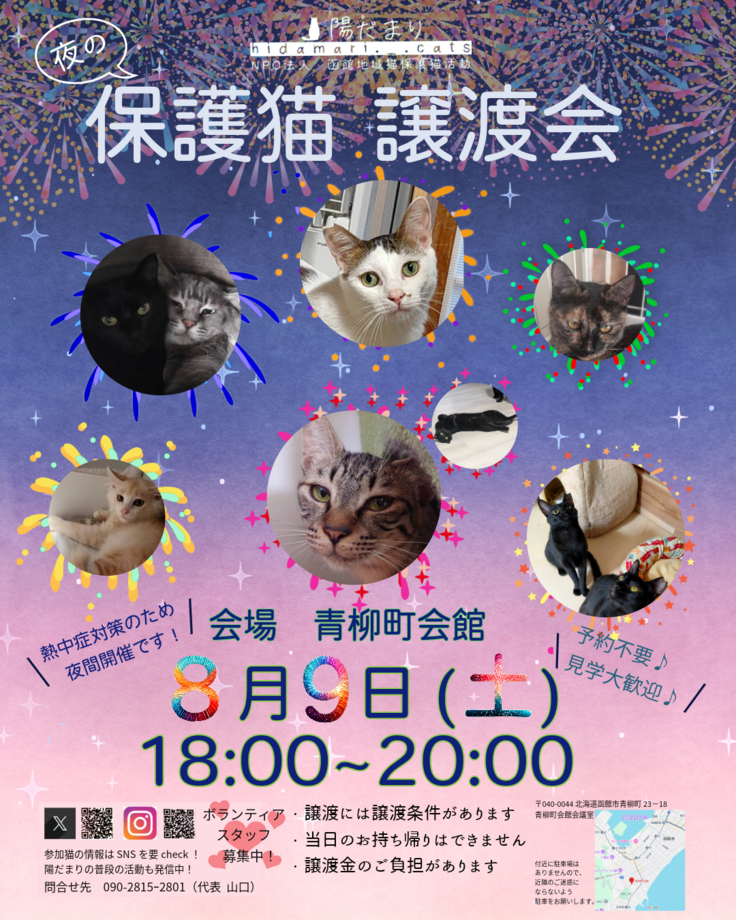 日に日に暑さが増し、連日30度越えの真夏日が続く函館ですが、メンバーも猫たちも暑さに耐えながらなんとか毎日乗り越えております。シェルターや猫部屋にはエアコンがあるとはいえ、外猫たちにこの暑さは心配になります💦
