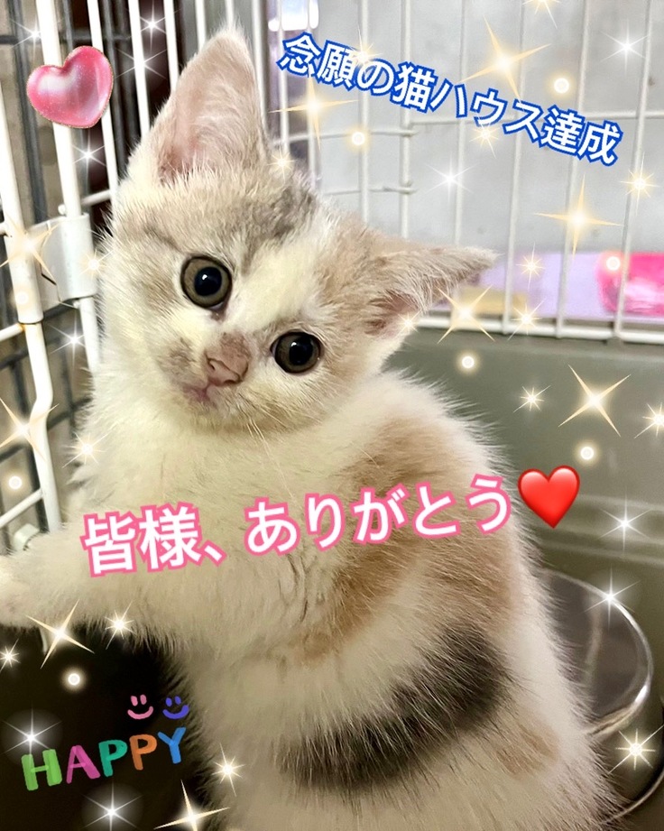 現在、シェルターに来た子達を猫ハウスに移動してストレス無い暮らしを送ってもらいます。