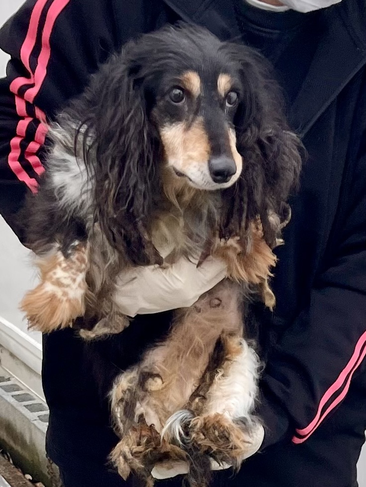 レスキュー時、人間の握り拳の2個分くらいの大きな腫瘍をお腹にぶら下げていました。