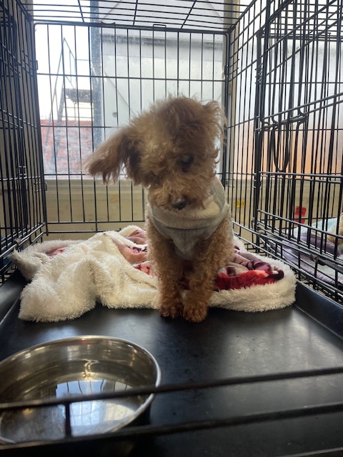 一日の長い時間をほとんどクレートの中で過ごします。
