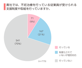 不妊治療を行なっている従業員が受けられる支援制度や取り組みがあるのは