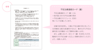 ●企業や職場に、仕事と不妊治療の両立に関する理解と配慮を求めるためのツールとして、又は、仕事と不妊治療の両立支援 制度を利用する際に医師又は医療機関が発行する証明書等として、企業や職場と、仕事と不妊治療の両立を行う従業員の方を つなぐツールとしてお役立てください。