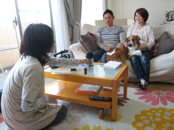 これから撮影。緊張気味のご夫婦と愛犬のアロマちゃん。