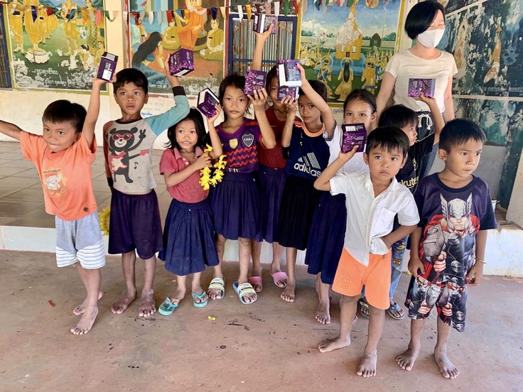 村の人も子ども達もたくさん集まってもらい無事に石鹸配布完了♬