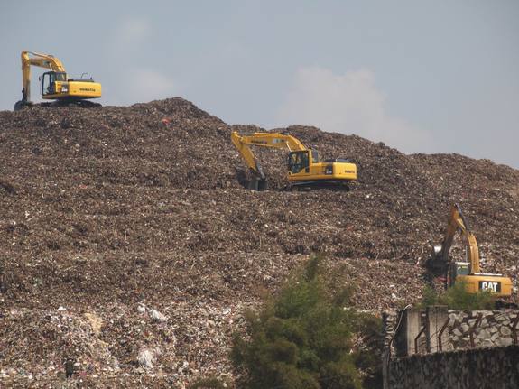 学校近くのごみの山で働いている「ユンボ」 どうやって上り下りしているのか?