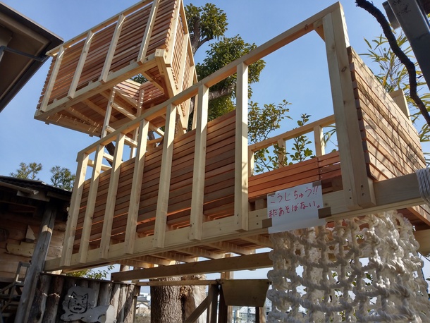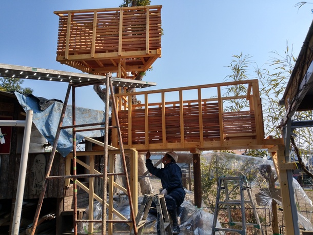 みなさまからのご支援をいただいて、ツリーハウス風展望台の施工が着々と進んでいます。