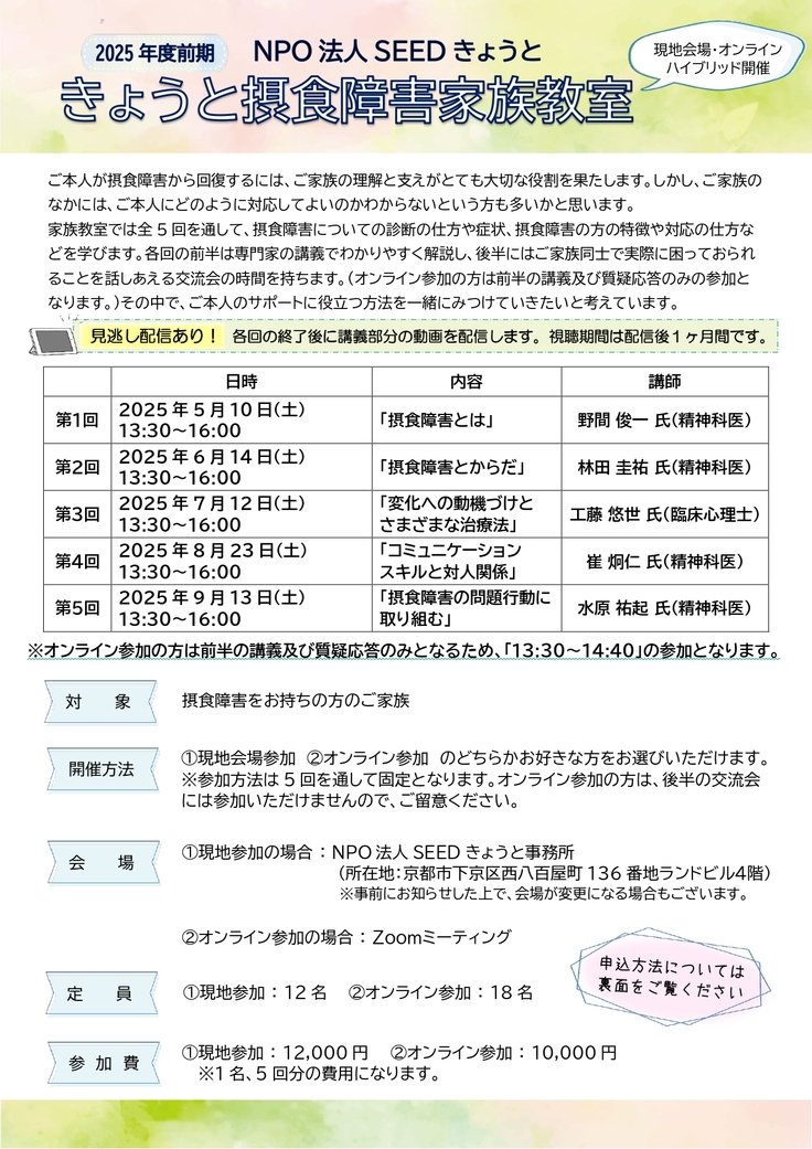 【4月開講】SEEDきょうと摂食障害家族教室お申し込み開始!