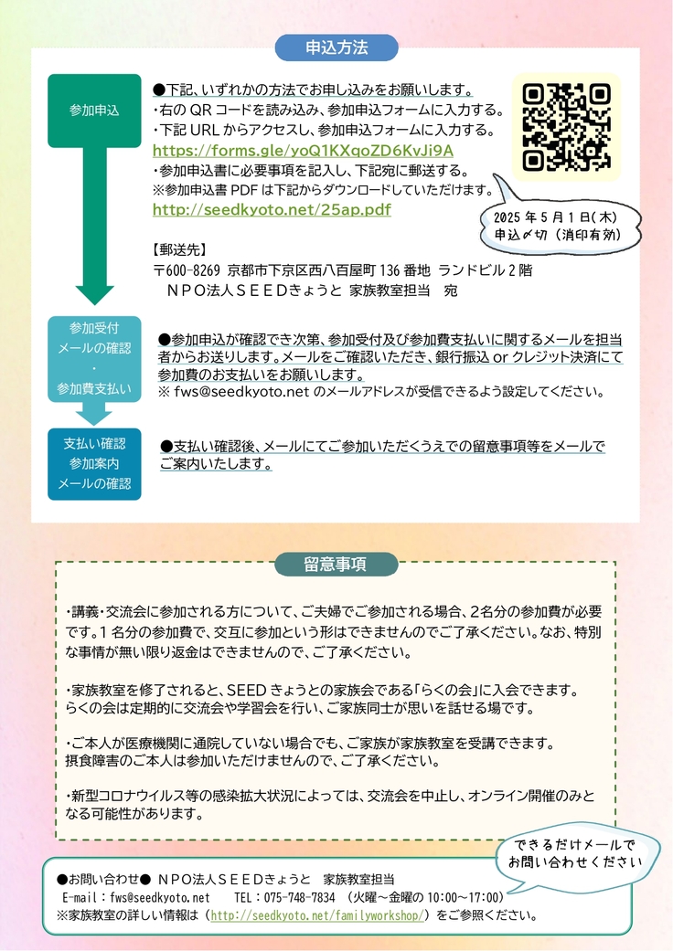 ①現地参加の場合 : NPO 法人 SEED きょうと事務所
