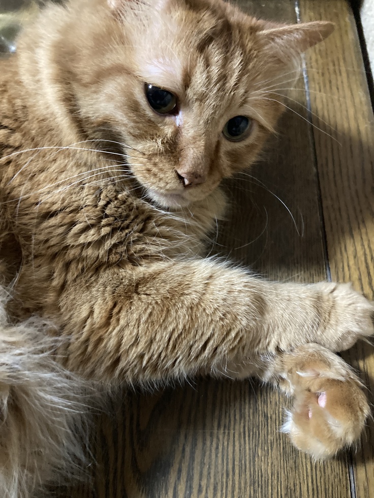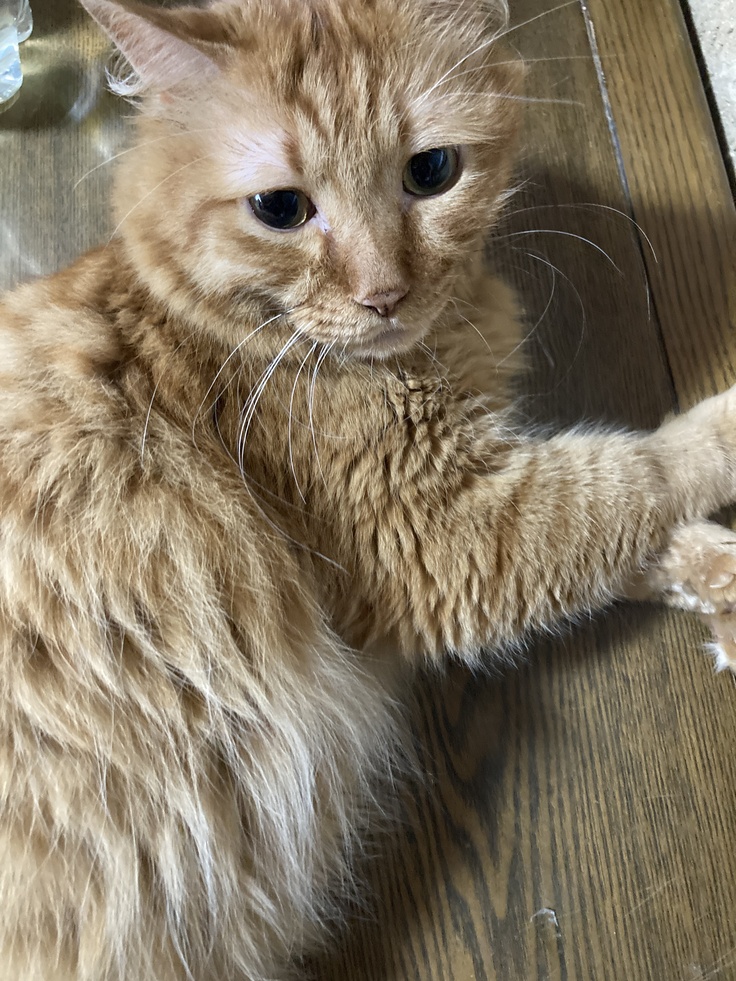 まるおくんは、猫風邪と経度の肺炎で現在はお薬で治療中です。少しずつ落ち着いてはきているのですが、ごろごろと痰が絡んだような音をならし、そのまま吐いてしまうことが多く、本人は凄くしんどいと思います。初めて病院へ行った時に比べ、食欲も戻りつつあり、最近は近くまできてくれるようにもなりました!
