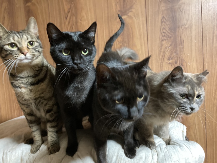 4匹そろってカメラ目線…と思いきや、やっぱり誰かしらはピントがずれてしまいます。懐っこい子たちなので、近づきすぎてしまうのかもしれません。
