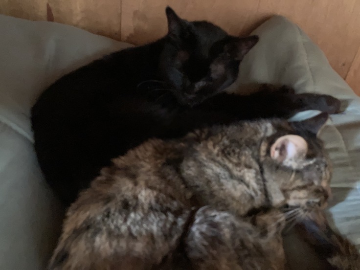 今朝、めめを病院へ連れて行ってきました。やはり風邪をひいていて、口の中の薬の効果も切れていたので、どちらにも効く注射をしてもらいました。軽度の脱水はありましたが補液の必要はなく、昨日までほとんど動かずちゃちゃが使っていたベッドで寝ていましたが、帰宅して少しすると動くようになり、注射の効果が出てきているように思います。とりあえず2週間様子をみて、また病院へ行くか判断する予定です。今はぐっすり眠っています😌