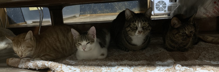 左から ぱん、みゃお、おもち、めめ。