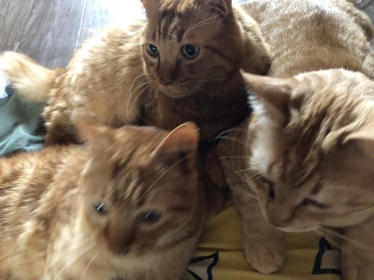 今朝は茶トラさんズが私の隣を完全占領。かわいすぎて写真を撮ったのですが、なぜか必ず1匹はブレます…🥲