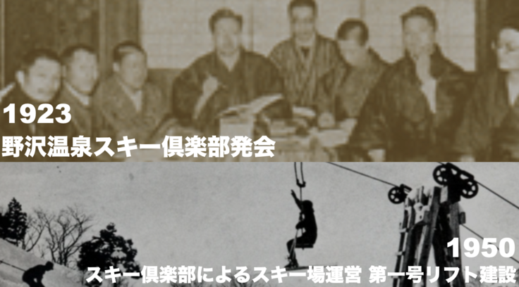 当クラブは大正時代末期からいち早く、雪を経済の発展や産業と結び付けて活動をしてきました。昭和25年に第一号のリフトを完成させた後、さらに7基のリフトを建設しました。スキーを楽しみながらスキー場を運営し、クラブは数々の名選手を育て上げました。