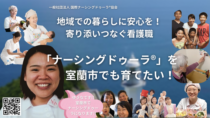一般社団法人国際ナーシングドゥーラ®︎協会が養成している「地域看護師ナーシングドゥーラ」を北海道室蘭市で育成するための実習指導者委託料の一部(旅費のみ)をご支援頂くプロジェクトです。