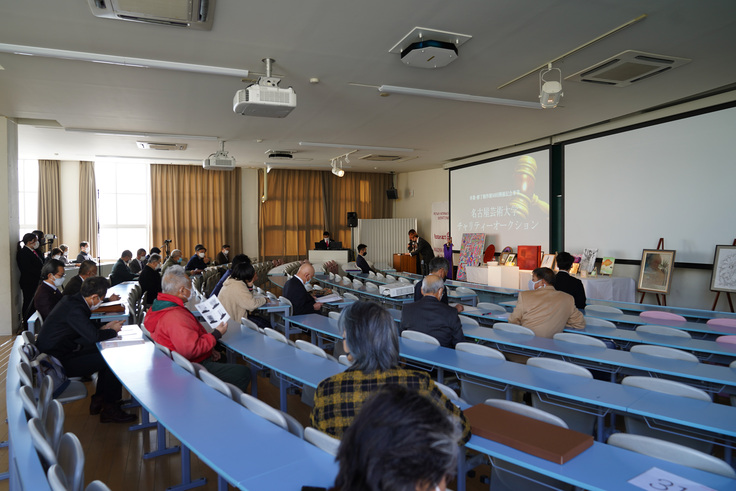 昨年度は美術デザイン以外にも「学生金管5重奏があなたのところへ演奏に伺います!」「令和4年度の日展にて「文部科学大臣賞」を受賞された美術領域の教授があなたの似顔絵を掛け軸に仕立てます!」など。他のオークションとはちょっと違う、名古屋芸術大学ならではの変わり種作品も多数出品されました。