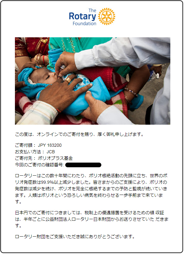 ※「国際ロータリー日本事務局 」よりロゴ・ポスターの掲載について許諾を取得しております。また、寄贈は「公益財団法人ロータリー日本財団」を通じて行われます。